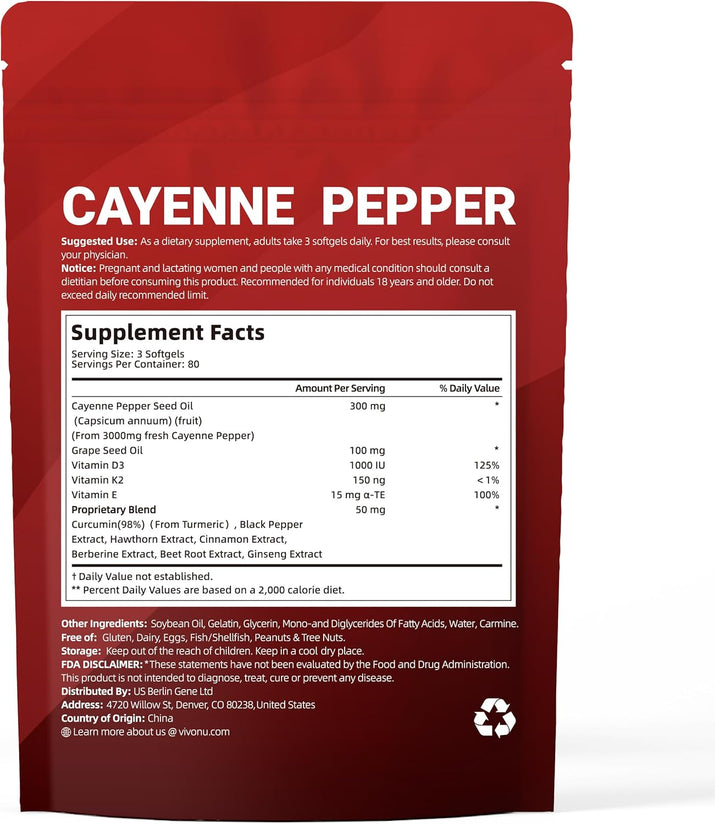 Take 2–3 Nutrava Cayenne Pepper Softgels daily with water, ideally with a meal for optimal absorption. For best results, use consistently—daily intake enhances circulation, eliminates fatigue, and fuels natural energy that lasts. Each bottle provides a 30-day supply to keep you on track with your wellness goals.
