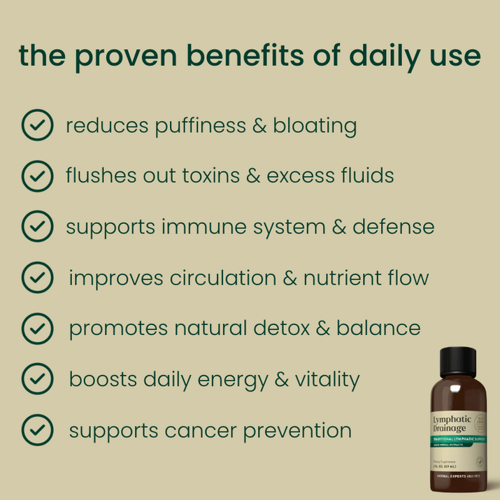 This high-quality liquid lymphatic support formula is made with a blend of 8 carefully selected herbs to promote healthy drainage, natural detoxification, and reduced fluid retention.
